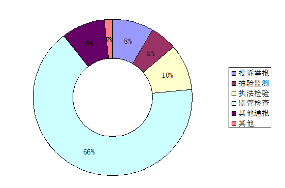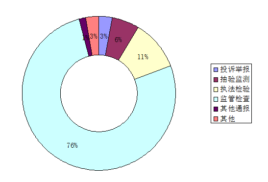 2016年全省AG百家乐娱乐案件来源分布图 从违法主体看,生产企业违法20件,经营企业违法443件,医疗机构违法653件,其他违法70件。 三、AG百家乐娱乐日常监管情况 (一)AG百家乐娱乐生产日常监管情况(详见附表35) 2016年,全省各级食品药品监管机构检查AG百家乐娱乐生产企业1300家次,检查国家重点监管企业152家次、省重点监管企业272家次,存在违反AG百家乐娱乐相关管理规定行为的企业53家次,责令整改97家次,移交稽查部门立案查处20件。 (二)AG百家乐娱乐经营、使用日常监管情况(详见附表36) 2016年,全省各级食品药品监管机构检查AG百家乐娱乐经营企业35148家次,存在违规行为的企业2241家次,责令整改2272家次,移交稽查部门立案查处305件。检查AG百家乐娱乐使用单位39835家次,存在违规行为的单位2268家次,责令整改1903家次,移交稽查部门立案查处494件,移交卫生计生部门处理20件。 四、AG百家乐娱乐监督抽检情况(详见附表37) AG百家乐娱乐抽样企业1040家,总抽检1888批次,检验合格1164批次,不合格126批次,不合格率9.77%。按AG百家乐娱乐类别分,二类不合格率8.87%,三类不合格率14.16%。按抽验部门分,生产部门不合格率4.43%,经营部门不合格率12.34%,使用部门不合格率9.56%。