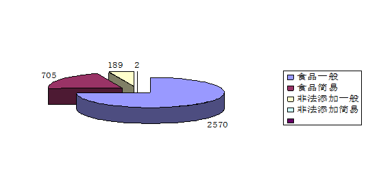 全省食品流通环节分布图 (三)食品经营日常监管情况(详见附表3) 2017年三季度,全省共检查销售环节食品经营主体108936家次,检查餐饮服务环节109493家次,共计218429家次,其中农村地区57599家次。销售环节共出动检查人员130696人次,餐饮服务环节142831人次,共计273527家次,其中农村地区68666人次。“明厨亮灶”实施户数47818家,量化分级评定总数90781家,其中优秀4062家,良好29251家,一般57286家。 二、食品案件查处情况(详见附表4) (一)生产环节违法食品安全案件 2017年三季度,食品生产环节一般程序案件437件,简易程序案件55件。一般程序案件,其中食品生产企业254件,食品添加剂生产企业5件,食品加工小作坊178件。货值5万元以下案件434件,简易程序55件。一般程序案件货值金额127.34万元。一般程序案件的437件中,投诉举报58件,抽检监测217件,执法检验33件,日常监管和专项检查111件,其他部门通报7件,其他11件。 (二)经营环节违法食品安全案件(详见附表5) 2017年三季度季度,全省查处经营环节食品违法一般案件2570件,简易程序案件705件。其中,添加非食用物质及滥用食品添加剂一般案件189件,简易程序案件2件。货值金额一般案件213.95万元,简易程序3.42万元。5万元以下一般程序案件2568件,简易程序案件705件。