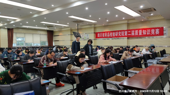 11月12日,省药检院举办全院第二届质量知识竞赛,竞赛以笔试形式开展,分2个考场进行,全院170余职工参赛。党委书记、院长冯星带队巡考,全面深入考察比赛组织情况及参赛人员答题表现。 “质量立院”是省药检院药品检验研究工作的根本遵循,此次竞赛旨在进一步强化全员质量意识,营造重视质量、追求卓越的良好氛围,通过“以赛促学、以竞促干”的有效举措,切实推动全院质量素养持续提升。本次竞赛考题设有单选、多选、判断、填空等多种题型,重点考查对院文化、质量管理等知识的掌握和运用情况,比赛结束后,将对表现优异的部门及个人予以集中奖励。 下一步,省药检院将不断抓实抓细提升质量意识的长效举措,持续营造全员重质、精益求精的学习氛围,着力打造“四川药检”质量标杆品牌,牢记“支撑监管保安全、助力产业促发展、服务公众惠民生”的职责使命,为保障人民群众用药安全筑牢高质量发展根基。