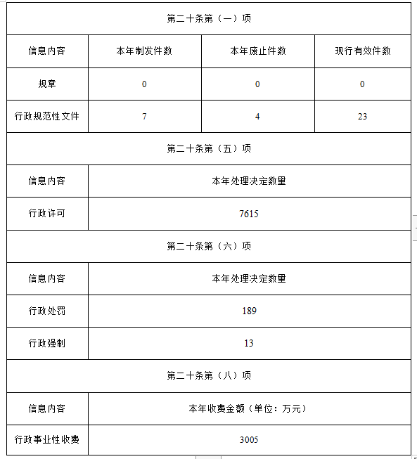 (三)政府信息管理情况。严格执行省局AG百家乐管理办法等规定,进一步健全内容审核和信息发布审核机制,压紧压实各方审查责任,对拟公开的内容严格进行规范性审核和保密审查。持续动态更新、规范发布规范性文件及有关工作文件,进一步做好涉药品监管建议提案答复、规划、许可、部门预决算、行政执法等法定政府信息的主动公开工作。2023年,制发行政性规范文件7件,废止4件,现行有效23件。